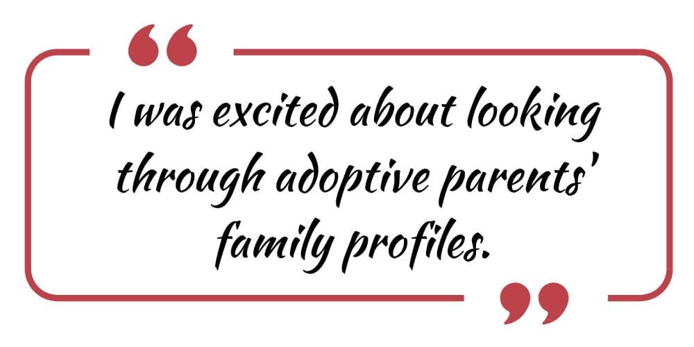 “I was excited about looking through adoptive parents’ family profiles,” Ellie explained. “There was so much joy and satisfaction in recognizing that I was doing something good.”