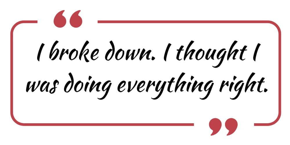 “I broke down. I thought I was doing everything right. My first two babies had come perfectly, with no complications. Did I do something wrong? Did I eat something? I was fine right up until I talked to Allen. My throat tightened. I sobbed uncontrollably.”