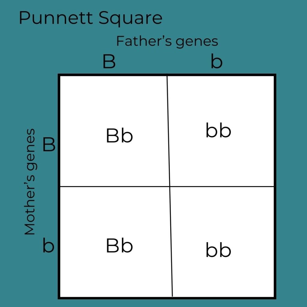 For those of you who don’t remember biology, the Punnett Square illustrates the potential ways an offspring can inherit a gene from biological parents.